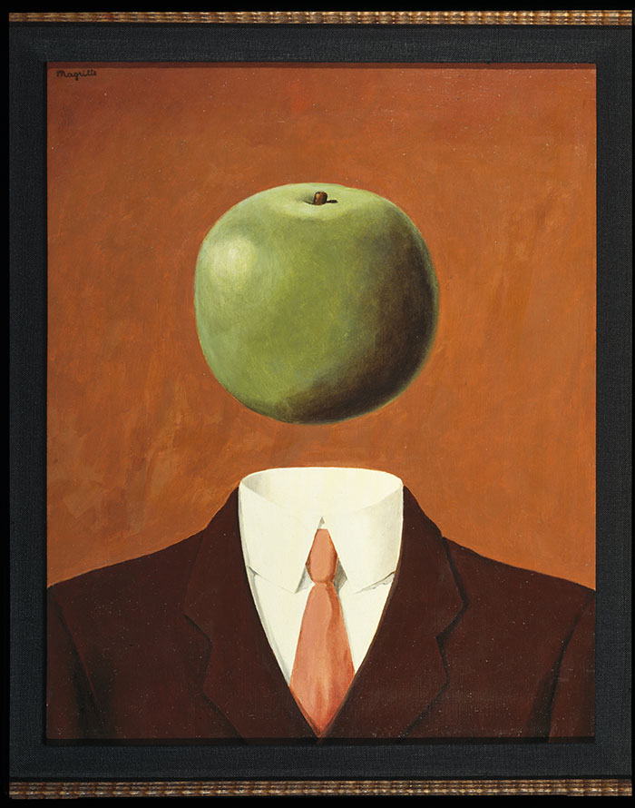 勒內(nèi)·馬格利特《抽象概念》創(chuàng)作于1966年,這是超現(xiàn)實(shí)主義藝術(shù)風(fēng)格最著名的代表作品之一,畫面中男子身穿西裝,頭部被一顆巨大的青蘋果替代,人物具象化的身體在畫面中被藝術(shù)家完全抽離,這種超現(xiàn)實(shí)的表現(xiàn)手法挑戰(zhàn)了觀眾對(duì)真實(shí)與幻象的認(rèn)知。勒內(nèi)·馬格利特一生追求在作品中將現(xiàn)實(shí)與幻想融合,挑戰(zhàn)傳統(tǒng)觀念,借鑒夢(mèng)境和幻象,通過隱喻的方式進(jìn)行藝術(shù)探索。