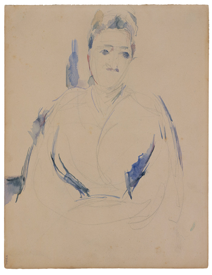 保羅·塞尚 《塞尚夫人肖像》 約1890 紙上水彩與鉛筆 27.3 × 21 cm 國(guó)立博古睿美術(shù)館-柏林國(guó)家博物館聯(lián)盟,借自博古睿家族 攝影:bpk圖片社/國(guó)立博古睿美術(shù)館-柏林國(guó)家博物館聯(lián)盟/延斯·齊厄
