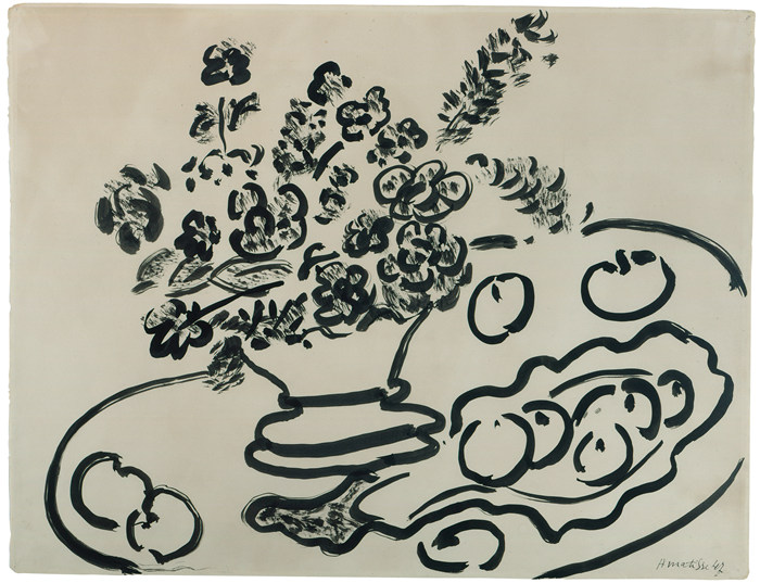 亨利·馬蒂斯 《乳白色花瓶》1947 紙上黑墨水 49 × 64 cm 國(guó)立博古睿美術(shù)館-柏林國(guó)家博物館聯(lián)盟 NG MB 157/2000 攝影:bpk圖片社/國(guó)立博古睿美術(shù)館-柏林國(guó)家博物館聯(lián)盟/延斯·齊厄