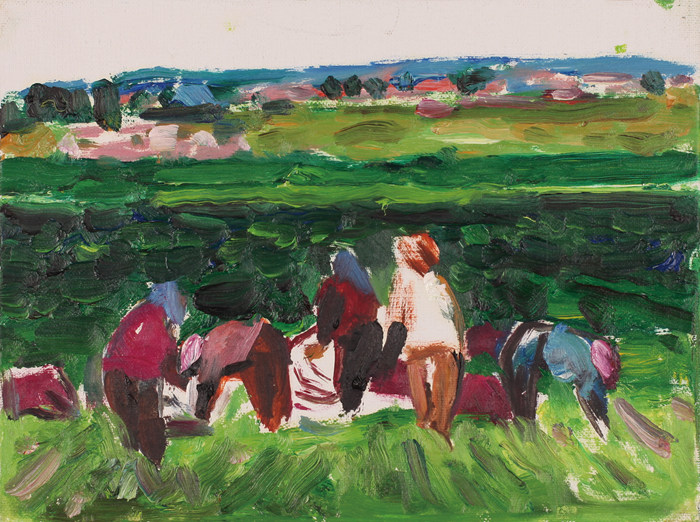 他筆下的田園風(fēng)景有異想天開的成分,如一大片綠色遼闊倒過來的天,也如海上奔騰而來的白浪之路,動(dòng)蕩不已又清晰可辨。他更多時(shí)候只畫綠色一片,深不可測而又簡約平靜,富有詩意和哲理。
