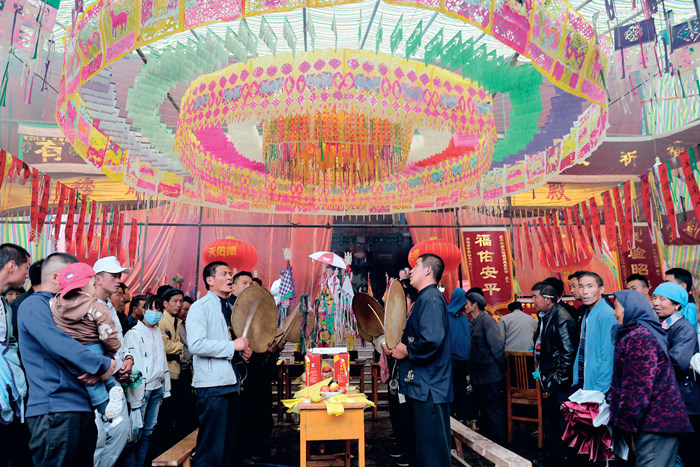 自從走進村莊以來,我深感鄉(xiāng)民的生活更加細膩、人性化。他們真正按照二十四節(jié)氣過著生活,同時過得更加有儀式感和體面。這種儀式感源于鄉(xiāng)土的人情社會。小到個體的婚喪嫁娶,大到整個村落的重大節(jié)日,比如喬老師所記載的牯藏節(jié),都需要全村共同參與和完成,每13年才舉行一次,是非常難得的盛大節(jié)日。在儀式過程中,藝術的表達形式變得非常重要。鄉(xiāng)村藝術與符號、儀式的聯(lián)系是非常緊密的。