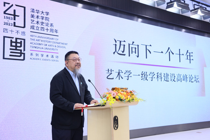 2023年11月4日上午,清華大學(xué)美術(shù)學(xué)院舉辦“四十不惑——清華大學(xué)美術(shù)學(xué)院藝術(shù)史論系成立四十周年慶典”活動(dòng)。四十年光陰荏苒,藝術(shù)史論系自1983年建立以來(lái),在保持工藝美術(shù)、設(shè)計(jì)史論研究傳統(tǒng)特色的同時(shí),大力發(fā)展美術(shù)史和藝術(shù)基礎(chǔ)理論研究,形成了藝術(shù)史、藝術(shù)理論、藝術(shù)批評(píng)與藝術(shù)管理全面發(fā)展、各有側(cè)重的學(xué)科格局。學(xué)無(wú)止境,思無(wú)止步。值此四十華誕,藝術(shù)史論系回顧過(guò)往、暢議未來(lái),邀請(qǐng)各屆系友、兄弟院校代表、專(zhuān)家學(xué)者共同探討藝術(shù)學(xué)一級(jí)學(xué)科的未來(lái)。