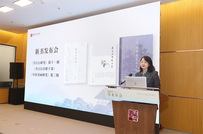 呂曉對(duì)2023年兩個(gè)中心的工作進(jìn)行了匯報(bào)。她介紹說(shuō),北京畫院成立之初確定了三大工作:創(chuàng)作、研究和教學(xué)。進(jìn)入新世紀(jì)以來(lái),北京畫院的創(chuàng)作與研究工作全面展開,通過成立兩個(gè)中心,招聘研究員,與美術(shù)館、博物館合作,出版圖書,策劃展覽,召開工作年會(huì),舉辦研討會(huì)和講座等活動(dòng),拓展了北京畫院在學(xué)界的影響力。為了慶祝齊白石誕辰160周年,今年的《齊白石研究》第十一輯有了全新的改版,重點(diǎn)聚焦齊白石的國(guó)際傳播與影響。2024年將迎來(lái)齊白石誕辰160周年,明年的年會(huì)主題是“齊白石何以成為大師”,希望學(xué)者可以從多方面角度討論齊白石大師的成就。