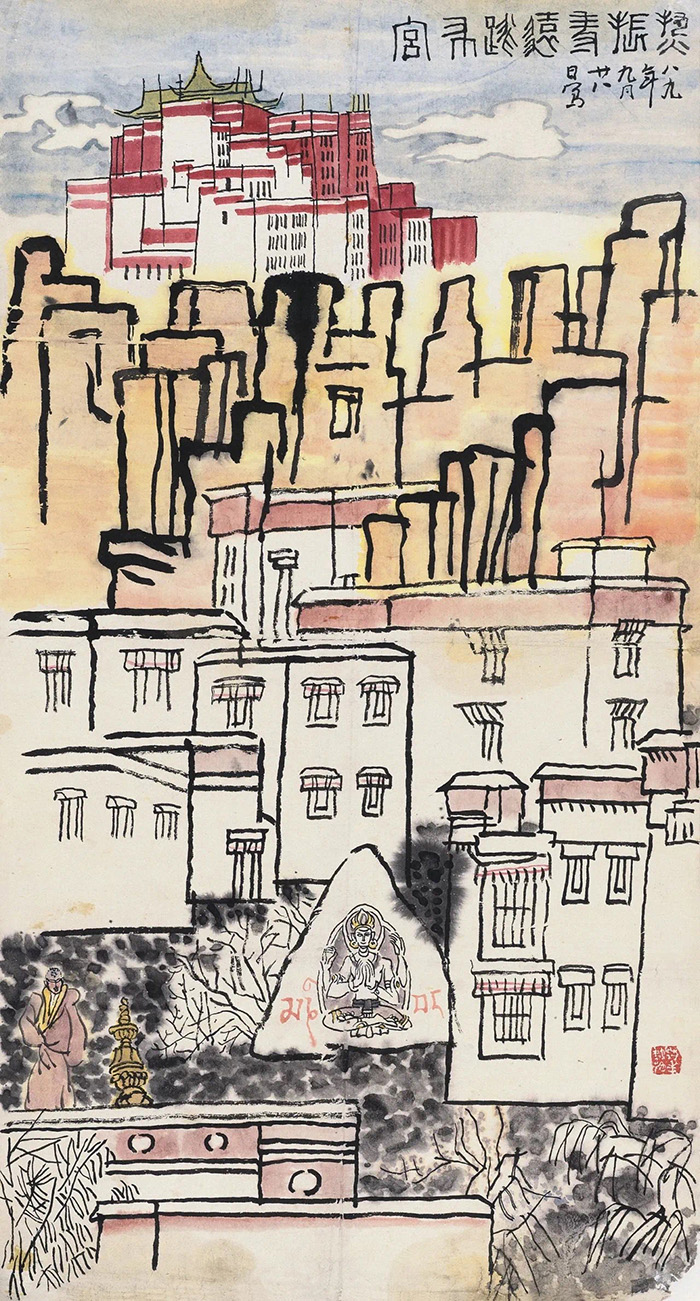 酈海糧 布達(dá)拉宮 設(shè)色紙本 鏡心 1989年作 84×45cm