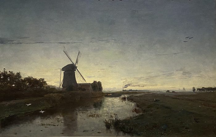 保羅·加布里埃爾畫中的風車甚是矚目,很少有景觀能像風車之于荷蘭那樣具有符號象征意義。其實到了19世紀下半葉,風車磨坊在技術(shù)上已過時,很快被蒸汽機取代,荷蘭很多地方都拆除了風車,但并不妨礙它在風景畫中依舊流行,這種對祖國景觀特征的強調(diào)在某種程度上可以被理解為是在表達民族認同。