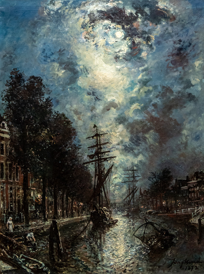 荷蘭為印象派貢獻(xiàn)了一位先驅(qū)人物——畫家、版畫家約翰·戎金——不是為荷蘭印象派貢獻(xiàn),而是在整個(gè)印象派。出生在荷蘭與德國邊境小鎮(zhèn)的戎金于1846年搬到巴黎,兩年后就收獲了評論家波德萊爾和左拉給出的好評。戎金在1852年的“巴黎沙龍”拿到金獎(jiǎng),然而戎金的日子過得的非常戲劇性,負(fù)債、酗酒、抑郁癥三件套一個(gè)不落。1860年代,戎金的一些畫作開始出現(xiàn)印象派的風(fēng)貌,他因此被認(rèn)為是印象派最重要的的先驅(qū)之一,當(dāng)時(shí)年輕的莫奈相當(dāng)傾慕他的才華。