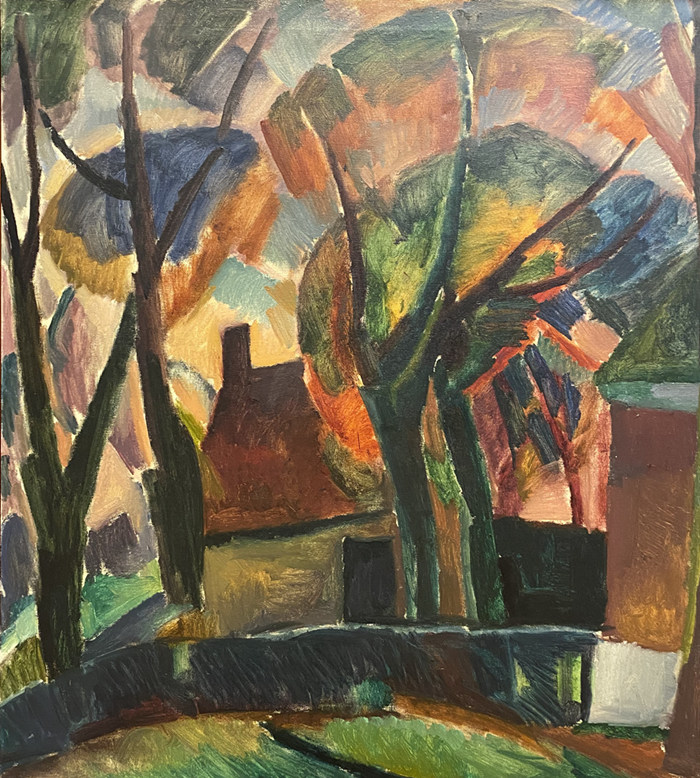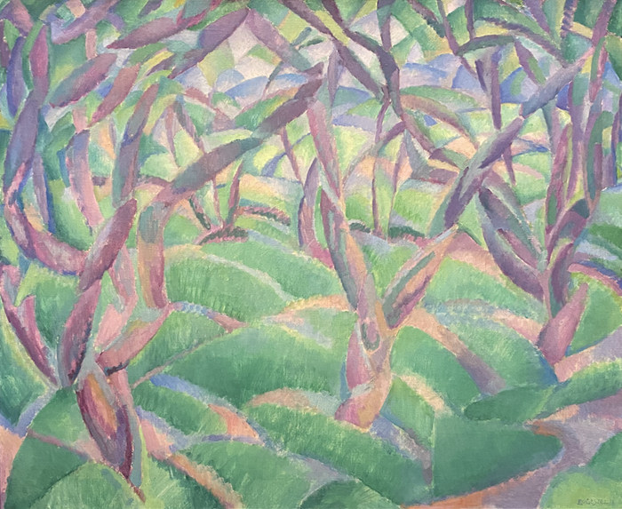 利奧·蓋斯特爾畫下立體主義《果園》的1913年,雅格巴·凡·希姆斯凱克也繪出了立體主義的《林地》,不過畫面兩側(cè)樹木彎曲的線條是她未來幾年表現(xiàn)主義的預(yù)示,雅格巴并未在立體主義停留太久。
