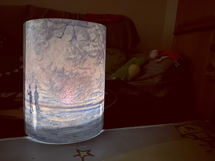 頂流的待遇就是連周邊都會(huì)比其他藝術(shù)家更多些,走出巴貝里尼博物館「印象派之冬」的展廳,進(jìn)入博物館附帶的藝術(shù)品商店,莫奈的《霜降吉維尼》已被制成燭臺(tái),點(diǎn)亮之后,氛圍感確是一頂一的寧?kù)o。