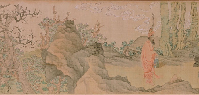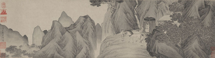 陳洪綬(1598–1652 年)、陳虞胤(活躍于十七世紀(jì)中期)、嚴(yán)湛(活躍于十七世紀(jì)早中期)問道圖 明,十七世紀(jì)中期 絹本設(shè)色手卷 故宮博物院 ? 故宮博物院