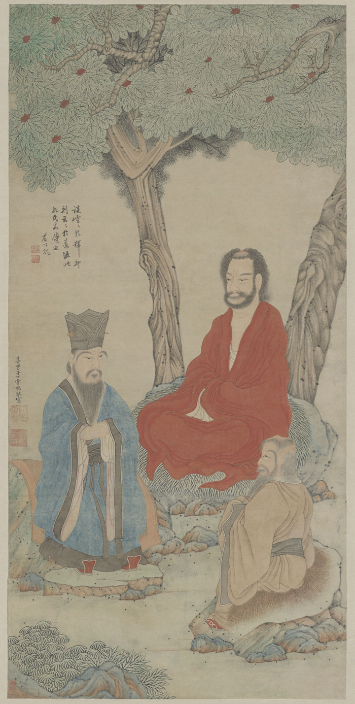 丁云鵬(1547–1628 年后)三教圖 明,十六世紀(jì)晚期或十七世紀(jì)早期 紙本設(shè)色立軸 故宮博物院 ? 故宮博物院