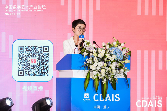 分論壇“連接、融合、共生”主持人、中數(shù)藝互動(dòng)科技(北京)有限公司 CEO楊小揚(yáng)認(rèn)為數(shù)字藝術(shù)正在開(kāi)創(chuàng)前所未有的創(chuàng)意空間和可能,數(shù)字藝術(shù)IP將賦能新經(jīng)濟(jì),為千行百業(yè)提供新動(dòng)能,推動(dòng)文化產(chǎn)業(yè)和實(shí)體經(jīng)濟(jì)的創(chuàng)新與發(fā)展。