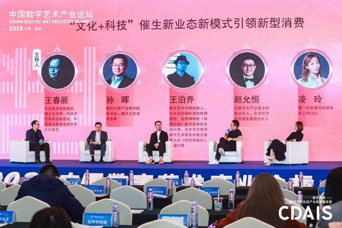 中央美術(shù)學(xué)院教授、博士生導(dǎo)師,中央美院美術(shù)館副館長(zhǎng)王春辰先生作為圓桌主持人,與數(shù)字藝術(shù)中國(guó)創(chuàng)始人、中央美院國(guó)際學(xué)院特聘教授王泊喬先生,騰訊文旅產(chǎn)業(yè)研究院秘書(shū)長(zhǎng)、騰訊文旅首席專家孫暉先生,宗袤文化產(chǎn)業(yè)基金創(chuàng)始合伙人、北京信方投資基金高級(jí)合伙人趙允恒先生,廈門安妮意風(fēng)科技有限公司CEO凌玲女士,展開(kāi)了以“文化+科技”催生新業(yè)態(tài)新模式引領(lǐng)新型消費(fèi)為主主題的圓桌對(duì)話。