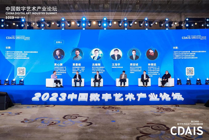 主論壇圓桌對(duì)話環(huán)節(jié),中國(guó)傳媒大學(xué)動(dòng)畫(huà)與數(shù)字藝術(shù)學(xué)院黨委書(shū)記黃心淵、故宮博物院數(shù)字與信息部副主任黃墨樵、數(shù)字藝術(shù)顯示文旅部技術(shù)創(chuàng)新中心專委會(huì)主任呂繼剛、嗶哩嗶哩副總編輯王浩宇、清華藝術(shù)與科學(xué)創(chuàng)新研究院數(shù)創(chuàng)中心主任周安斌、四川美術(shù)學(xué)院文化遺產(chǎn)數(shù)字藝術(shù)研究中心主任林俊廷針對(duì)“數(shù)字藝術(shù)產(chǎn)業(yè)高質(zhì)量發(fā)展”“促進(jìn)經(jīng)濟(jì)發(fā)展深度融合”“數(shù)字藝術(shù)內(nèi)容引領(lǐng)Z世代消費(fèi)熱潮”“中國(guó)數(shù)字藝術(shù)產(chǎn)業(yè)的標(biāo)準(zhǔn)化探索”“數(shù)字藝術(shù)產(chǎn)業(yè)與城市經(jīng)濟(jì)發(fā)展的關(guān)系”等議題展開(kāi)深入討論。