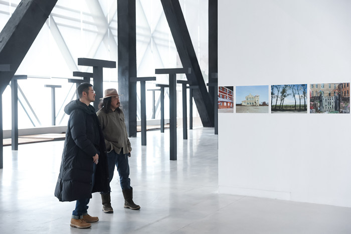看似遙遠的東北界河,亦和本次展覽地產(chǎn)生著深層空間共振。南京,作為一個同樣自古充斥河流和橋梁空間經(jīng)驗的城市,其城市景觀可以從距地面兩百米高的金鷹美術館窗外一覽無余。同時,鏈接兩個塔樓的美術館中央展廳也同樣作為橋梁空間構建著城市制高點上的流動與邊界。通過此展,東北亞界河兩岸不同國家,不同民族,不同語言,不同文化的人們的故事與記憶,將共時異地地并置在一個宛如河流的橋梁空間中??臻g、作品之間相互關聯(lián),甚至邀請觀眾從不同作品、作品內(nèi)外看到一樣的人、物與風景。(本文圖片與視頻均由金鷹美術館提供)