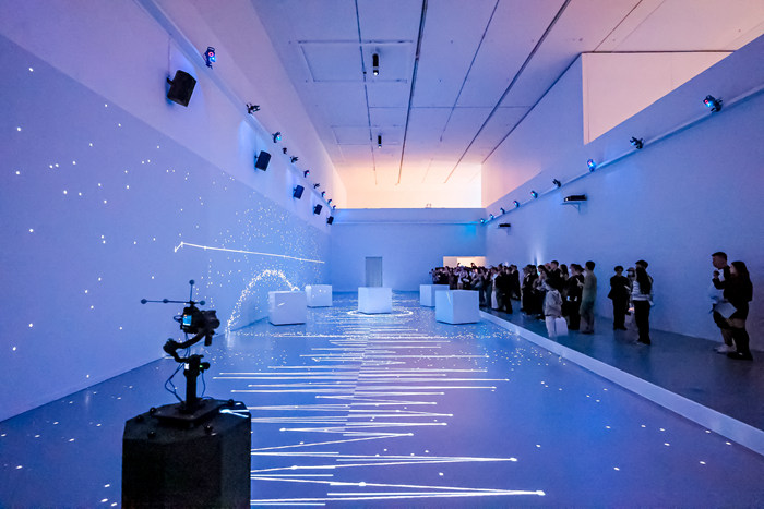 作為Rhizomatiks首次來(lái)到中國(guó)的大型個(gè)展,本次展覽呈現(xiàn)融合虛擬與現(xiàn)實(shí)體驗(yàn)的作品。數(shù)數(shù)字技術(shù)的應(yīng)用使Rhizomatiks的創(chuàng)作與現(xiàn)實(shí)相連,使展覽成為一件與世界變化實(shí)時(shí)共鳴的“實(shí)驗(yàn)室”。