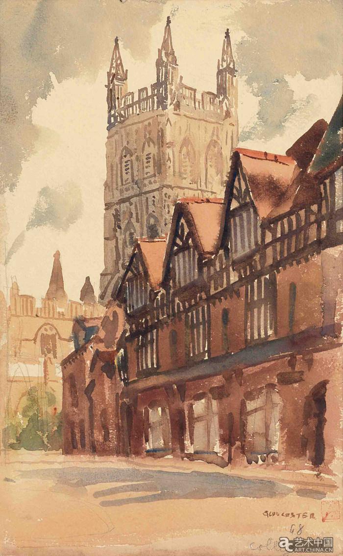 格勞塞斯特,大教堂[英] 童寯 1930.5.4 水彩 東南大學(xué)圖書館藏