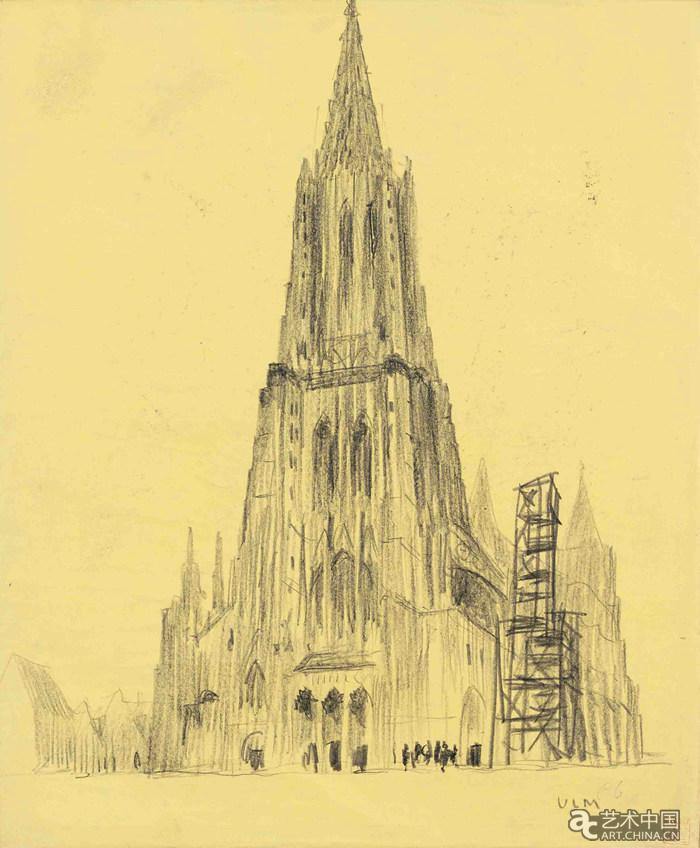 烏爾姆,大教堂[德] 童寯 1930.7.27 鉛筆 東南大學(xué)圖書館