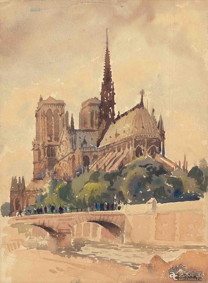 巴黎,巴黎圣母院[法] 童寯 1930.5.23 水彩 東南大學(xué)圖書館藏
