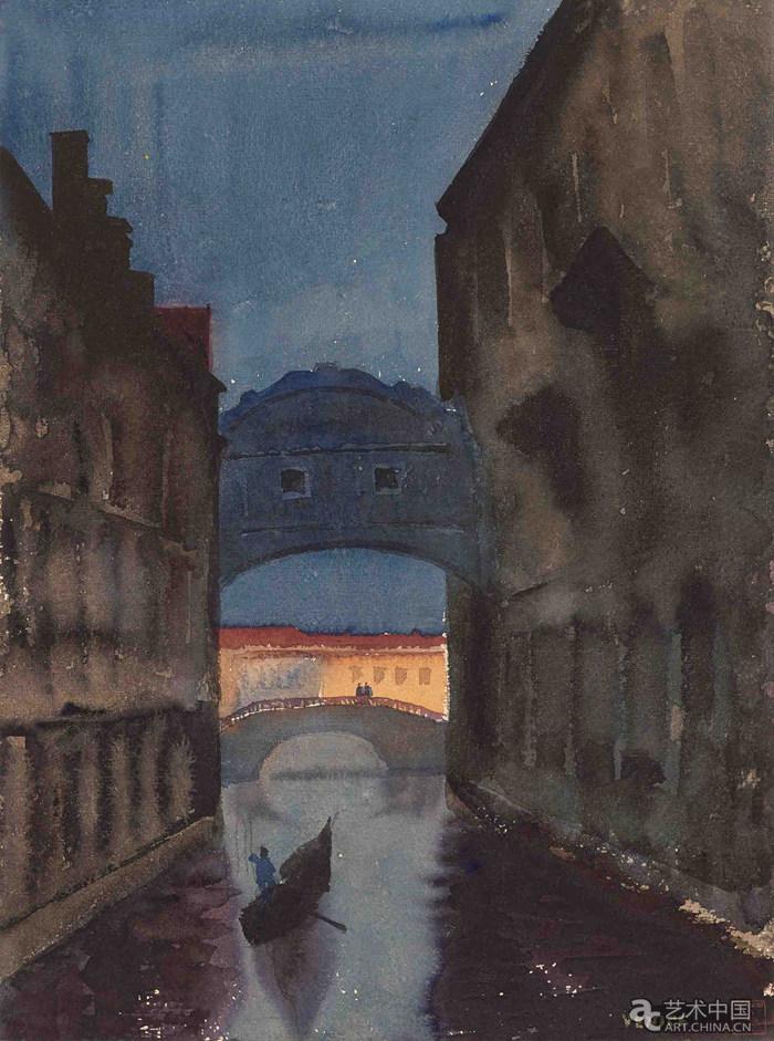 威尼斯,嘆息橋夜景[意] 童寯 1930.8.8 水彩 東南大學(xué)圖書館