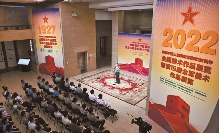 2022年8月1日,“慶祝中國人民解放軍建軍95周年全國美術(shù)作品展覽暨第15屆全軍美術(shù)作品展覽”在中國美術(shù)館開幕。