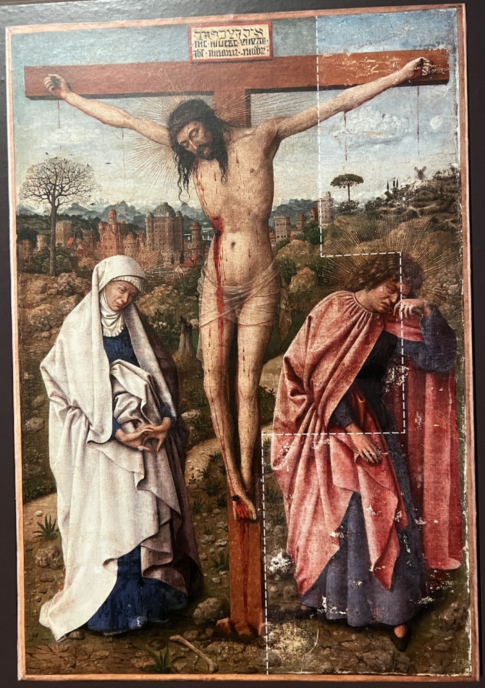 與揚(yáng)?凡?艾克的板面油畫相比,修護(hù)完工依舊無法掩蓋《耶穌受難》這幅布面油畫“羸弱”的狀況,不過修護(hù)前后的對比依舊是顯而易見的。只能說,確實(shí)盡力了。