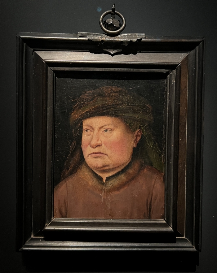 《男子肖像》(Portrait of a Man),揚(yáng)?凡?艾克工作室(Jan van Eyck,Werkstatt),約1425-40,板面油畫,拍攝于特展現(xiàn)場