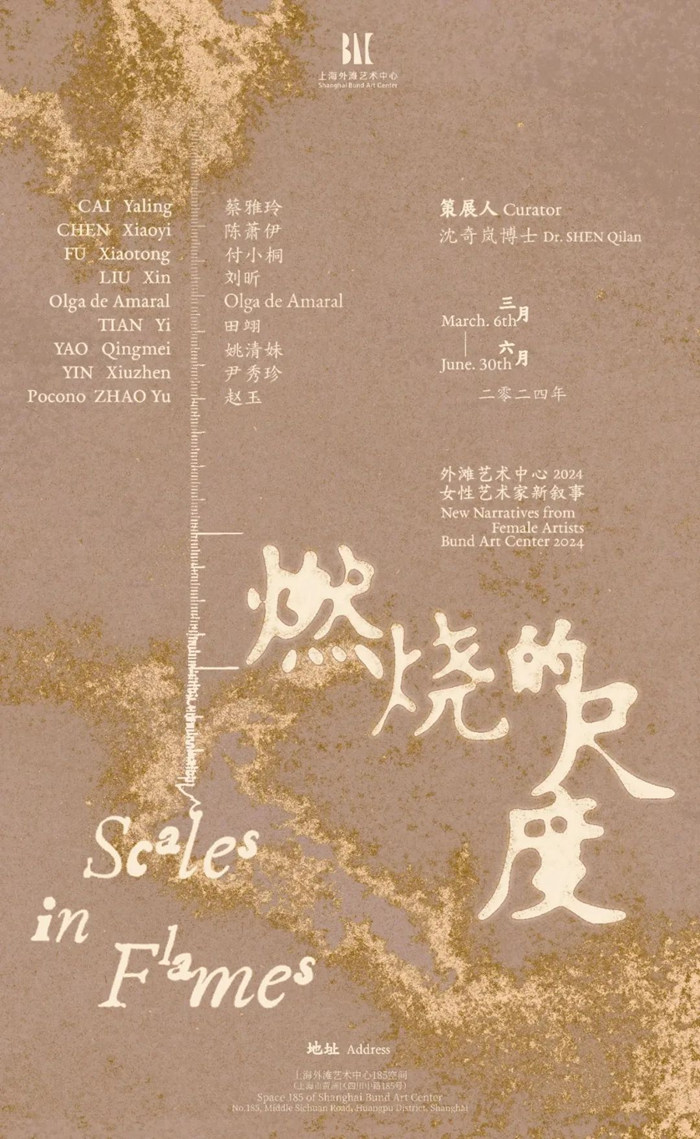 本次展覽邀請(qǐng)了當(dāng)下具有前沿視野與獨(dú)特生命經(jīng)驗(yàn)的女性藝術(shù)家,一同展開新敘事。燃燒的尺度意味著,重新建立認(rèn)知的框架,重新丈量世界。陳蕭伊以數(shù)百?gòu)埿l(wèi)星地圖拼成橫斷山地區(qū)俯視圖,她以圖像技術(shù)與其中的時(shí)間哲學(xué)來構(gòu)建更宏大的感知。Olga de Amaral在金箔與布料中重構(gòu)了民族史。田翊轉(zhuǎn)譯了身體的密碼,在基因折射中形成了新的存在狀態(tài)。