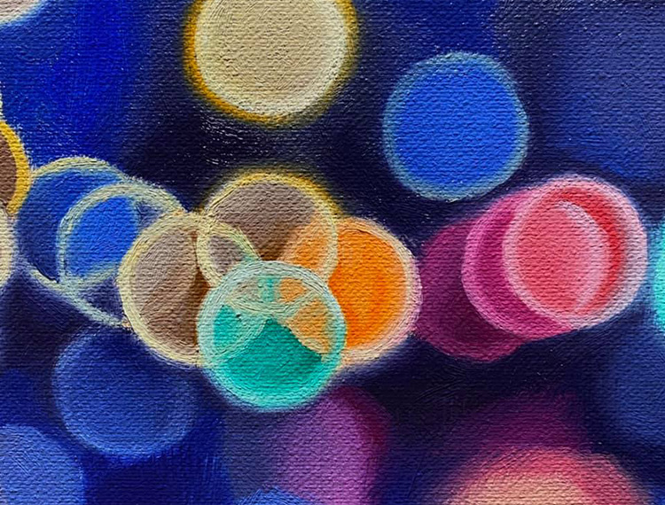 他的這些三大系列抽象畫作失焦作品,斑斕光影和模糊景物彼此交織,傳遞了某種感性、不經(jīng)意的瞬間。目光跟隨著他編排的光圈,感受著光芒的節(jié)奏變換、韻律跳動(dòng)以及光色轉(zhuǎn)變,給人一種既熟悉又陌生的感覺,讓觀者自然而然的沉陷于這種神秘費(fèi)解又熟悉的敘事中。