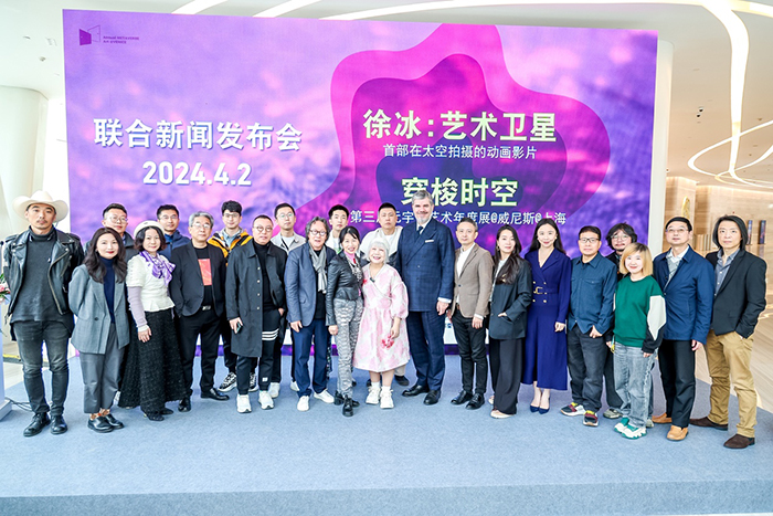 2024年4月2日,《徐冰:藝術(shù)衛(wèi)星——首部在太空拍攝的動畫影片》《穿梭時空——第三屆元宇宙藝術(shù)年度展@威尼斯@上?!穬纱蠹磳⒃谝獯罄崴故⒋罅料嗟乃囆g(shù)展覽,于鳳凰中心正式發(fā)布。
