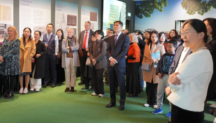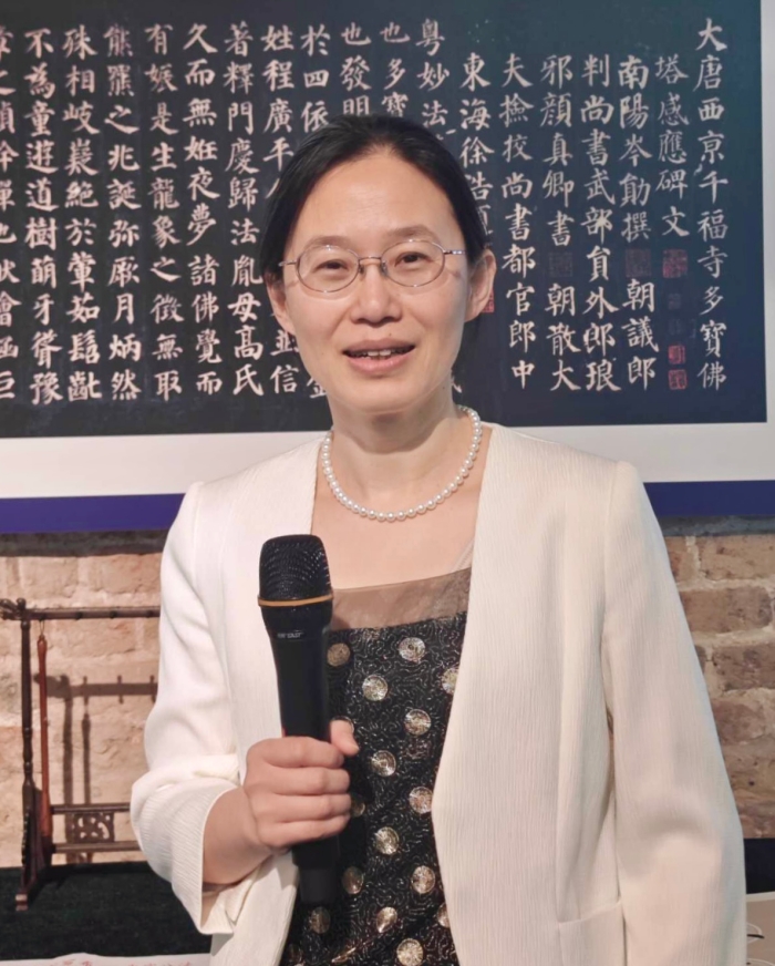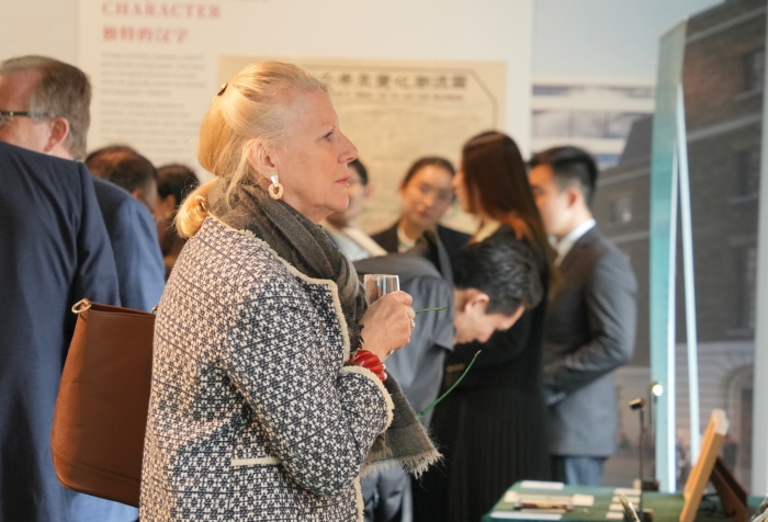 同濟(jì)大學(xué)外國語學(xué)院院長吳赟教授在致辭中表示,文明交流互鑒是人類文明進(jìn)步和世界和平發(fā)展的重要動力,文明的交流天然以語言文字為介質(zhì)。中國漢字是世界上連續(xù)使用時(shí)間最長的文字之一,是中華文化的核心載體。本次展覽搭建起中英兩國文化之間溝通的一座橋梁,促進(jìn)東西方文化的交融與碰撞。中英觀眾可以親身感受到漢字歷久彌新的傳承與極具美感的魅力,希望展覽引發(fā)中英文化的共鳴,架起兩國間的民心之橋,增進(jìn)兩國人民之間富有吸引力的情感紐帶。