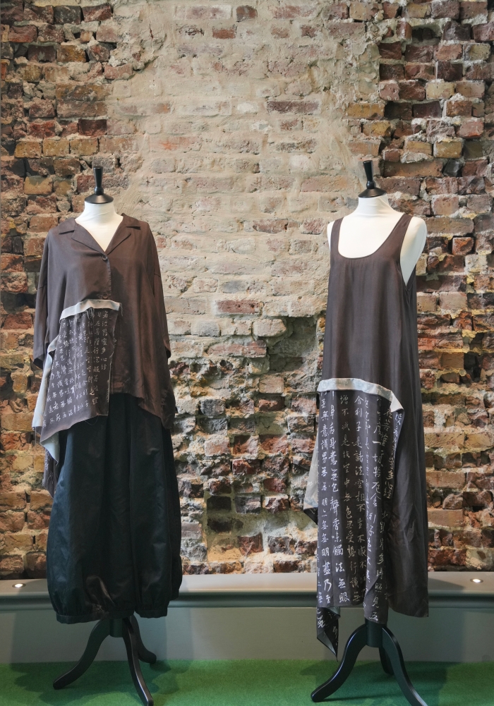 展覽展示的以中國文字為創(chuàng)作靈感的服裝《心經(jīng)》(設(shè)計(jì)師 班曉雪)