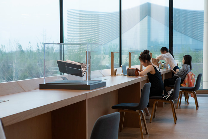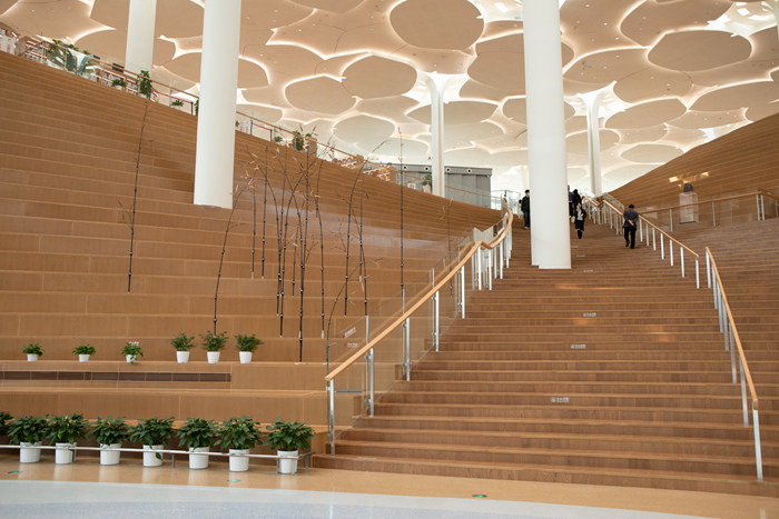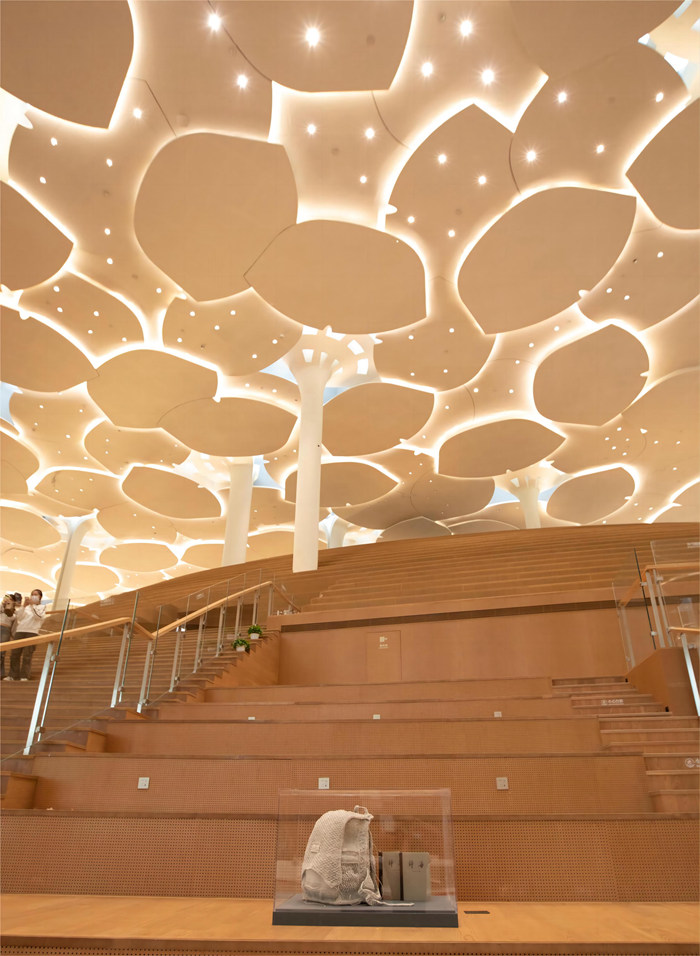 此次展覽是北京城市圖書館以公共藝術(shù)為方式建構(gòu)的系列展的首展。該館自開館以來便受到了廣泛關(guān)注,截至2024年4月15日,已累計(jì)接待讀者118.67萬人次,平均每天約10691人次訪問,讀者平均駐留時(shí)長為2.3小時(shí),共有52214名讀者借閱圖書,書刊外借總量達(dá)到21.77萬冊(cè)次,成為北京乃至全國公共文化設(shè)施的新地標(biāo)。其內(nèi)景宛如兩座書山,所形成的山谷恰是對(duì)中國文字“?!钡男蜗蟊磉_(dá)?!邦?,智也,明也,圣也”,由兩山之谷遠(yuǎn)望明察,是為睿。故而,推導(dǎo)出展覽的主題:“睿尋”。