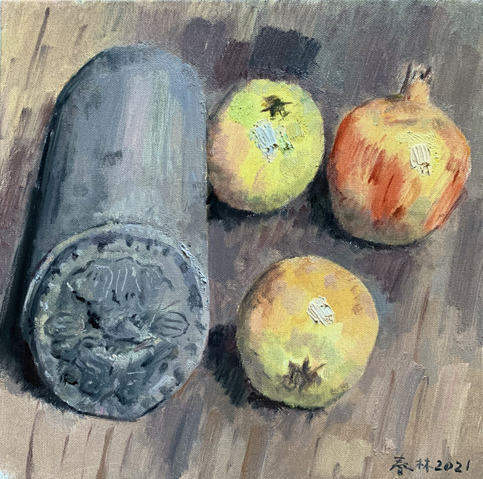 《瓦當與石榴》 布面油彩 30X30cm 2021年