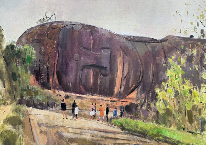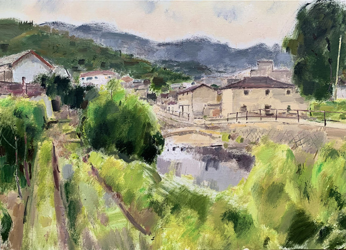 江西人杰地靈,歷史文脈深厚,寫生中,我們不僅追尋先人的足跡,同時也在見證時代的變遷。此時的鄉(xiāng)野已不同于過往,既有古意,又有發(fā)展中的現(xiàn)代氣息,鄉(xiāng)土并不土,青山綠水間透著詩意田園的寧靜,在這里,美隨處可尋。大自然神奇美妙,一切的豐盛與榮耀都隱藏其中?;蛟S我們習以為常,視而不見,錯過了很多,但上天從不吝嗇饋贈,無時無刻不在顯明祂的作為。只要你愿意打開心扉,尋找就會尋見,叩門就會開門。太初有道,道不遠人,驀然回首,美就在燈火闌珊處。人生百味,都是過客,總在得失之間糾纏。每個人都需要被愛充盈,被光引導,心中有愛,讓愛自然生發(fā),滌蕩心靈、舒緩神經(jīng)。每次離開都市的喧囂,心在創(chuàng)作中總是被療愈,雖艱辛但充實快樂,收獲滿滿。