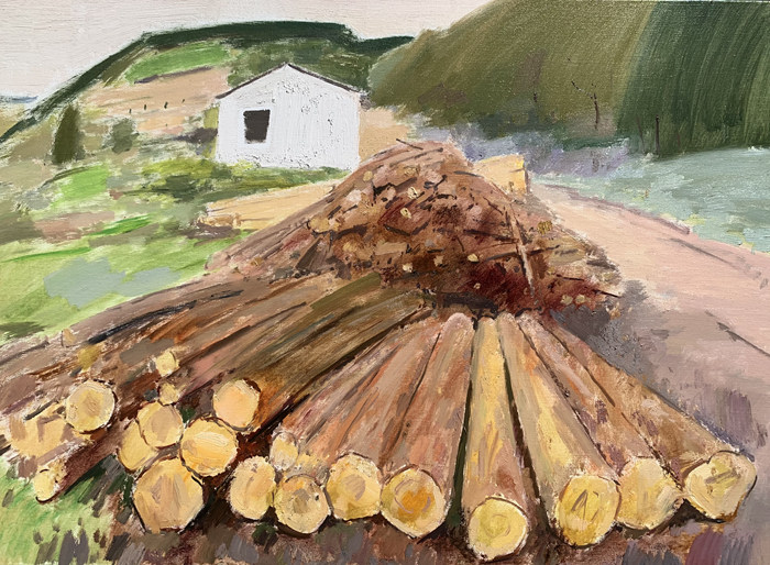 《圓木堆》布面油彩 50X70cm 2023年