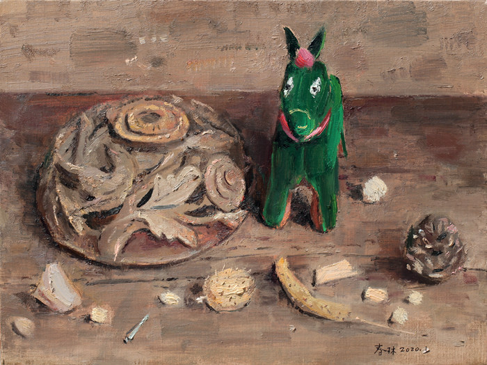 朱春林的靜物畫在一定程度上接續(xù)了這個傳統(tǒng),只不過他的表現(xiàn)對象由莫蘭迪的宇宙秩序轉向了人類個體生命的日常的永恒。這種永恒通過那些年代久遠的祖母傳下來的舊物,通過那些舊物上留下的幾代人幾春秋的印記,朱春林捕捉這些靜止的視覺形態(tài)來表征某種動態(tài)的、生命中永恒的安寧。在一定程度上可以說,朱春林將靜物人物化了,正如他將人物靜物化一樣。