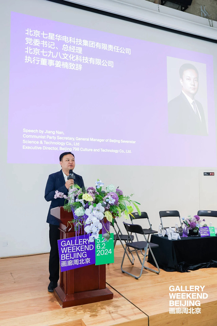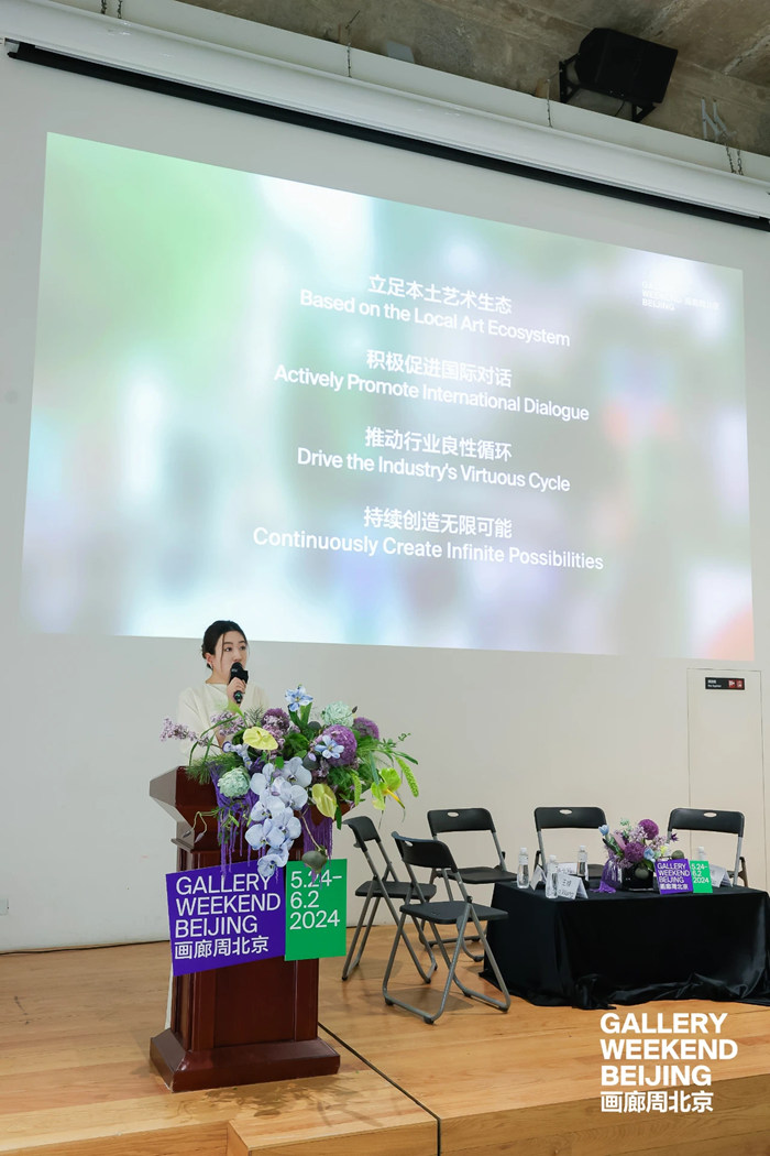 2024年4月15日,畫廊周北京2024新聞發(fā)布會(huì)暨圓桌論壇在798CUBE正式舉辦,北京七星華電科技集團(tuán)有限責(zé)任公司黨委書記、總經(jīng)理,北京七九八文化科技有限公司執(zhí)行董事姜楠,畫廊周北京項(xiàng)目總監(jiān)楊佳霖,學(xué)術(shù)委員會(huì)代表暨參展畫廊代表、馬刺畫廊合伙人來夢馨(Sherry Lai),學(xué)術(shù)委員會(huì)代表暨參展非營利機(jī)構(gòu)代表、MACA美凱龍藝術(shù)中心總監(jiān)楊北辰,新勢力單元策展人袁佳維,北京當(dāng)代·藝術(shù)博覽會(huì)聯(lián)合創(chuàng)辦人、藝術(shù)總監(jiān)鮑棟等嘉賓到場。