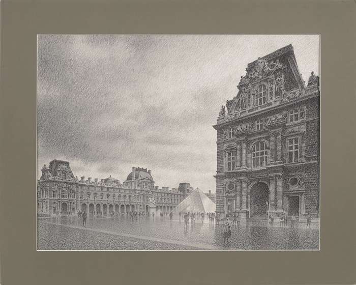 大盧浮宮計(jì)劃(1983–1993)中拿破侖庭院金字塔 入口的白天效果圖,巴黎