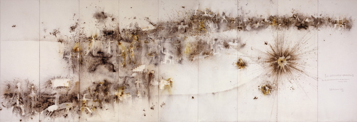 2006 年 火藥紙本裱于木板(九屏)? 蔡國強(qiáng) 鳴謝藝術(shù)家