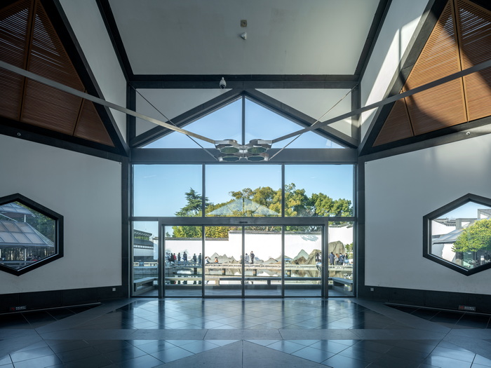 田方方 蘇州博物館(2000–2006)大廳框起了花園中的石景等主要景觀