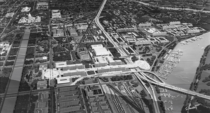 羅伯特·施瓦茨(繪圖師) 齊氏威奈華盛頓西南區(qū)都市重建項(xiàng)目(1953–1959)早期方案效果圖