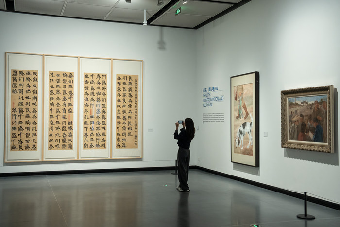 其中,《匯成大觀——廣匯美術(shù)館館藏精品展》收錄吳昌碩、齊白石、黃賓虹、徐悲鴻、潘天壽、張大千、林風(fēng)眠、傅抱石、李可染、石魯、吳冠中等“十一大家”為主要代表的名家精品,是廣匯美術(shù)館對中國美術(shù)現(xiàn)代性歷程研究的開篇之展,呈現(xiàn)出展覽體系完備、結(jié)構(gòu)時空合鳴、敘事暢神意趣、作品傳承有序四個特點;《入世:20世紀(jì)以來的中國現(xiàn)當(dāng)代藝術(shù)暨泰康收藏精品展》,聚焦20世紀(jì)中國現(xiàn)當(dāng)代藝術(shù)的“入世性特征”,探討了藝術(shù)家如何將自我和藝術(shù)作品與社會現(xiàn)實緊密連接起來的歷史進程;《少不入川?——藝術(shù)盛年的群像》作為廣匯美術(shù)館“地域藝術(shù)生態(tài)生長系列”的開篇,體現(xiàn)了廣匯美術(shù)館致力于當(dāng)代藝術(shù)的在地性研究,關(guān)注、尊重并支持本土中生代藝術(shù)家創(chuàng)作與發(fā)展,助力在地藝術(shù)家通過展覽向國際化發(fā)展,建立起多元化的川渝地區(qū)藝術(shù)生態(tài)圈的文化愿力。