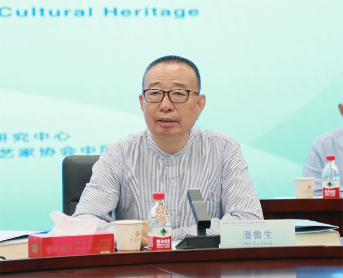 中國(guó)文聯(lián)副主席、中國(guó)民間文藝家協(xié)會(huì)主席、山東工藝美術(shù)學(xué)院名譽(yù)院長(zhǎng)潘魯生發(fā)言