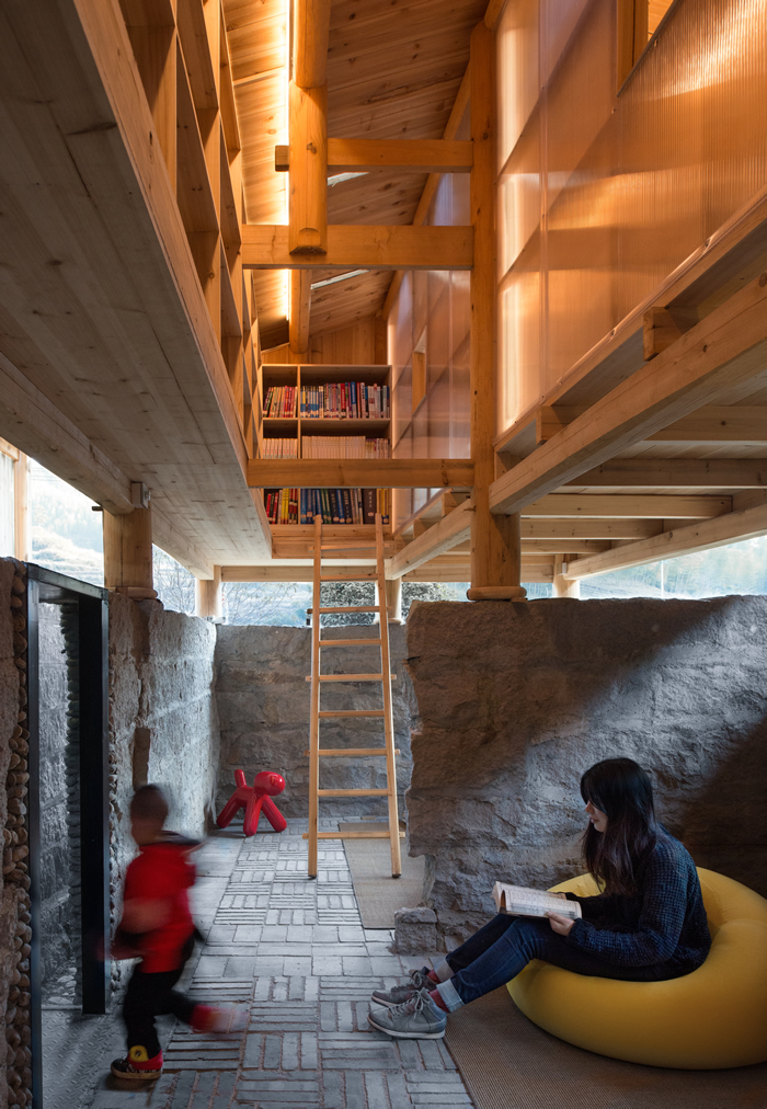 上坪古村由牛棚改造的鄉(xiāng)村圖書室室內(nèi)