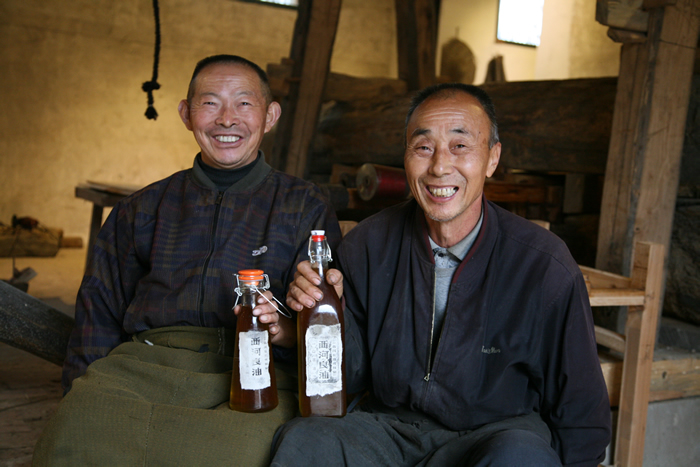西河糧油博物館,工匠張孝齊,張孝猛拿著自己榨的油