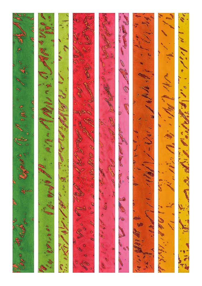 潘微,年·月·日,240X10cm3條、240X15Cm3條、240X20Cm3條,大漆綜合材料,2017年
