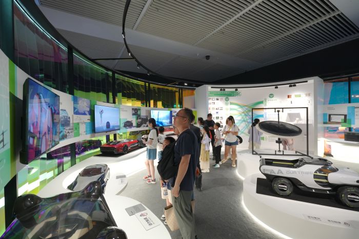 以上汽集團的名爵Cyberster純電概念跑車、中國中車的新一代動力集中型動車組等為代表的作品通過展示新能源汽車的發(fā)展景象、中國動車所體現的裝備制造實力、清潔能源的轉化方案,以及材料的綠色化設計探索,呈現出科技進步在實現循環(huán)發(fā)展方面的無限可能。