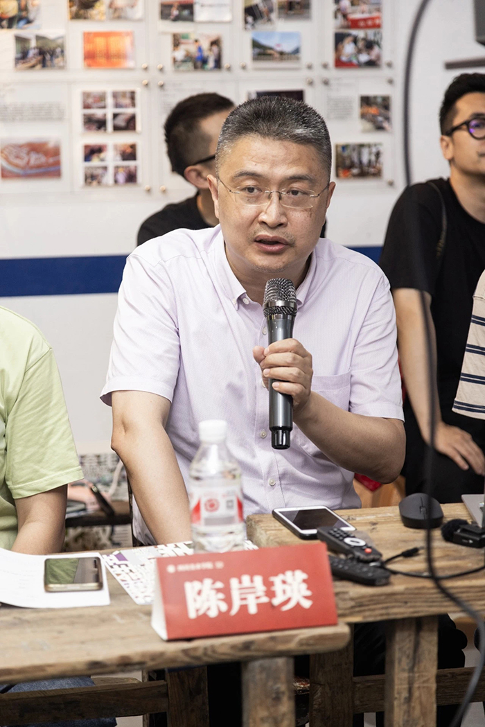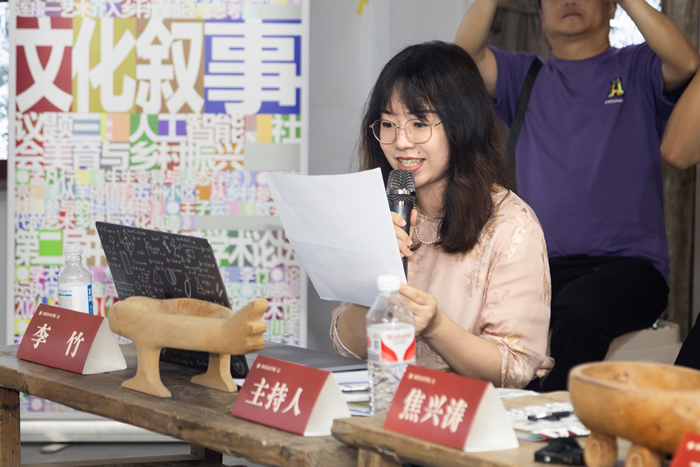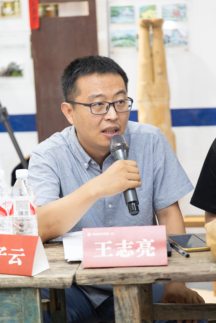 王志亮以《從羊磴鎮(zhèn)到五洲小區(qū):從鄉(xiāng)村參與到社區(qū)參與的場景轉(zhuǎn)換》為主題進行演講,從2015年接觸羊磴鎮(zhèn),講述了其發(fā)展變化,包括空間變大、參與者從找藝人變?yōu)檎依纤嚾?,并認為這兩個變化是羊磴鎮(zhèn)項目能持續(xù)的關(guān)鍵,即要有實在的空間和盡可能多的居民參與。其次提到在四川美術(shù)學(xué)院羊磴項目后形成以鄉(xiāng)村為先導(dǎo)、以社區(qū)為擴展的兩條線路。接著他展示了自己在社區(qū)開展藝術(shù)活動的計劃和成果,如在重慶五洲小區(qū)利用廢舊物品進行創(chuàng)作、駐留剪紙藝人的定制剪紙等。最后他認為羊磴鎮(zhèn)的經(jīng)驗可以推廣,在這一過程中藝術(shù)也從啟蒙的主導(dǎo)者變?yōu)槿踅槿胝?,用精神性的形式俯身大地,關(guān)切國家實際利益。