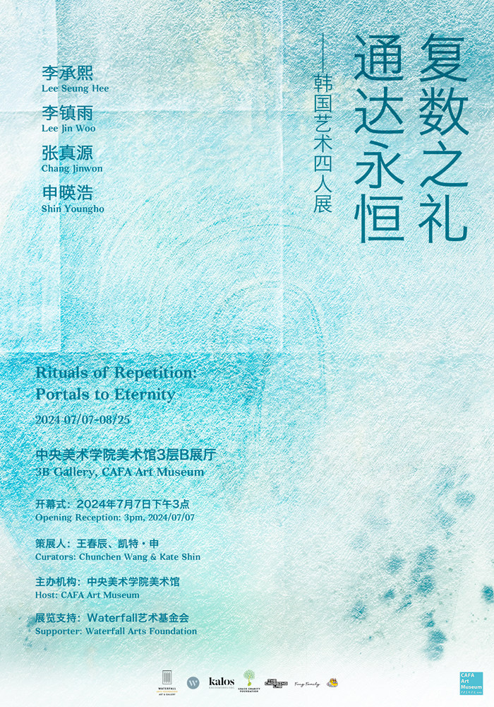 2024年7月7日下午,一場(chǎng)個(gè)體藝術(shù)風(fēng)格、語(yǔ)言彼此鮮明,而在創(chuàng)作方向與路徑上具有一致性的視覺(jué)展覽在中央美術(shù)學(xué)院美術(shù)館三層B展廳上演。這次展覽名為“復(fù)數(shù)之禮 通達(dá)永恒”(Rituals of Repetition,Portals to Eternity),由中央美術(shù)學(xué)院美術(shù)館主辦,Waterfall藝術(shù)基金會(huì)支持,王春辰、凱特·申(Kate Shin)擔(dān)任策展人,展出了李鎮(zhèn)雨(Lee Jin Woo)、張真源(Chang Jinwon)、李承熙(Lee Seung Hee)和申暎浩(Shin Youngho)四位韓國(guó)藝術(shù)家的藝術(shù)創(chuàng)作。
