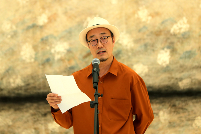 藝術(shù)家申暎浩在開(kāi)幕式上致辭